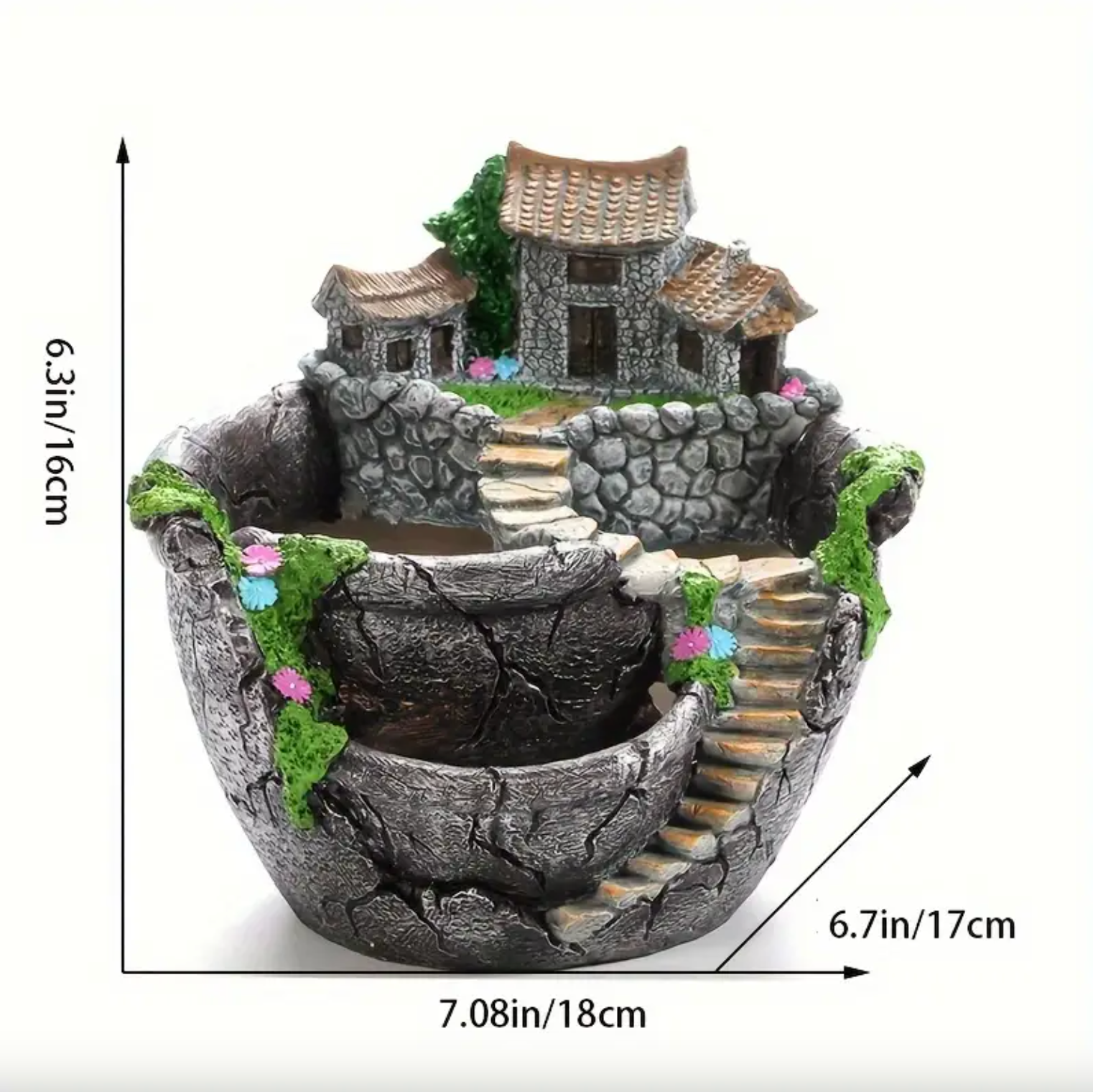 Add a timeless touch of rustic beauty to your home with Courtyard Charm™ – Antique Architectural Flowerpot. Shaped like a miniature village courtyard, this three-tier planter brings fairytale nostalgia to life. From its terraced steps and stone cottage façade to its layered compartments perfect for succulents or flowers, it’s a piece that tells a story at every glance!