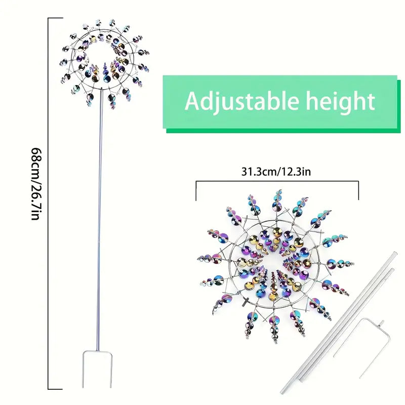 • Size: Large, Eye-Catching Display: Adjustable height for easy customization, our wind spinner stands tall at up to 26.7 inches and spans 12.3 inches in width